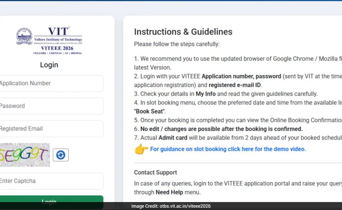 Vellore Institute of Technology (VIT) has released the admit cards for the VIT Engineering Entrance Examination (VITEEE) 2026 scheduled on April 28, 2026. Candidates can download their hall tickets via the Online Test Booking System (OTBS) portal on the official VIT websites. The computer-based test will be held across 130 Indian cities and nine international locations. Students must carry a printed admit card to the exam center and verify all details on the document before the test.